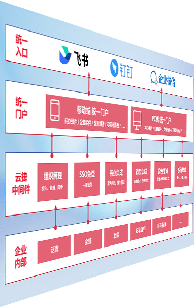 对协作平台提供支持服务,,,,支持企业应用与协作平台对接,,,,包含组织同步、、、、消息集成、、、、待办集成等。。。。支持目前主流的协作平台:钉钉、、、、企微和飞书。。。